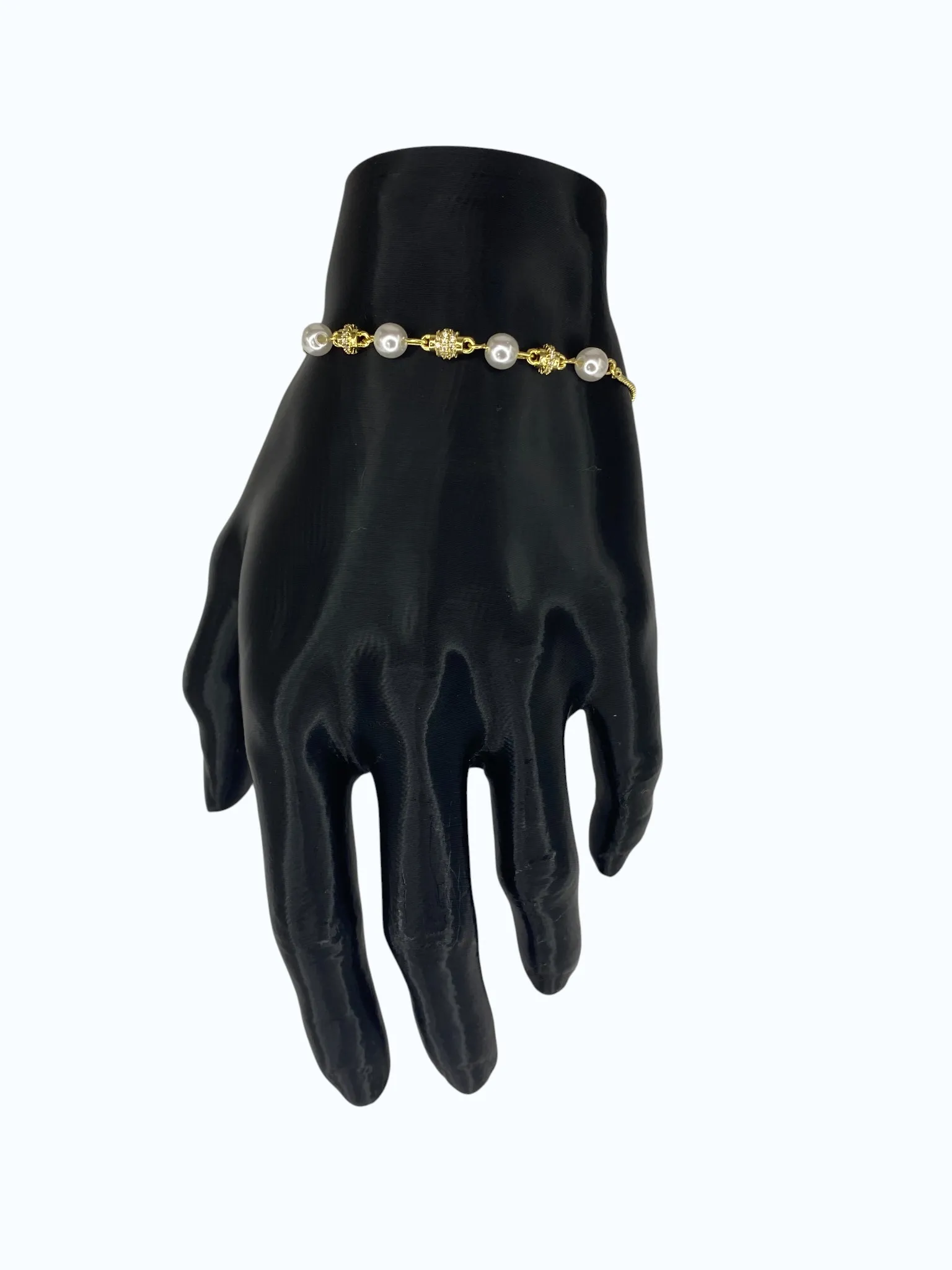 Gold Çelik Asansörlü İnci Taşlı Zincirli Bileklik