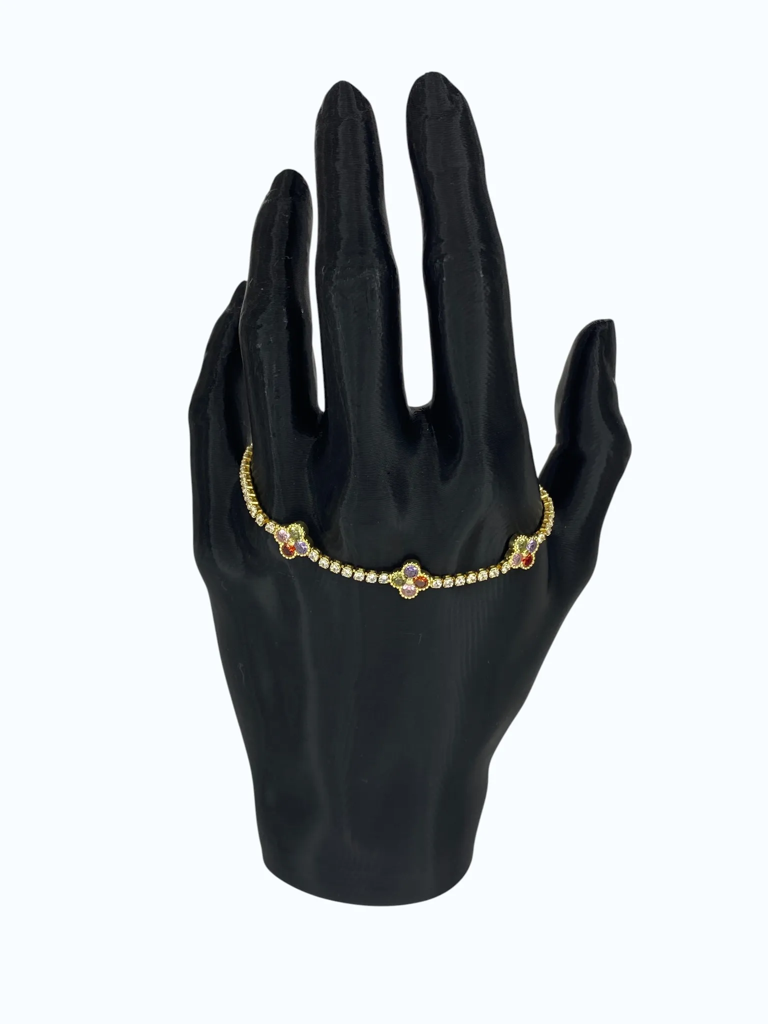 Gold Yonca Renkli Zirkon Taşlı Çelik Bileklik