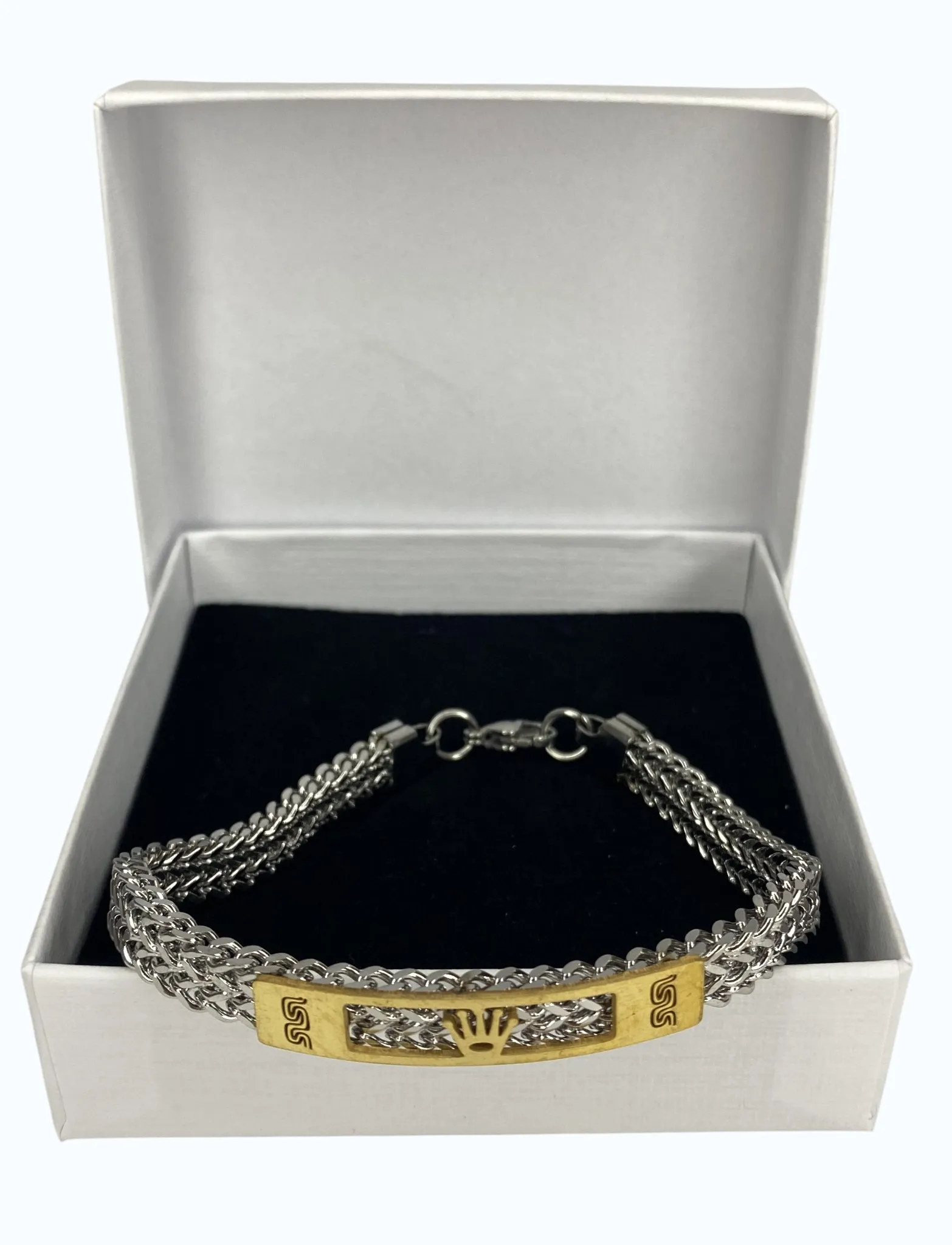 Silver Gold Kral Taçlı Model Çelik Erkek Bileklik