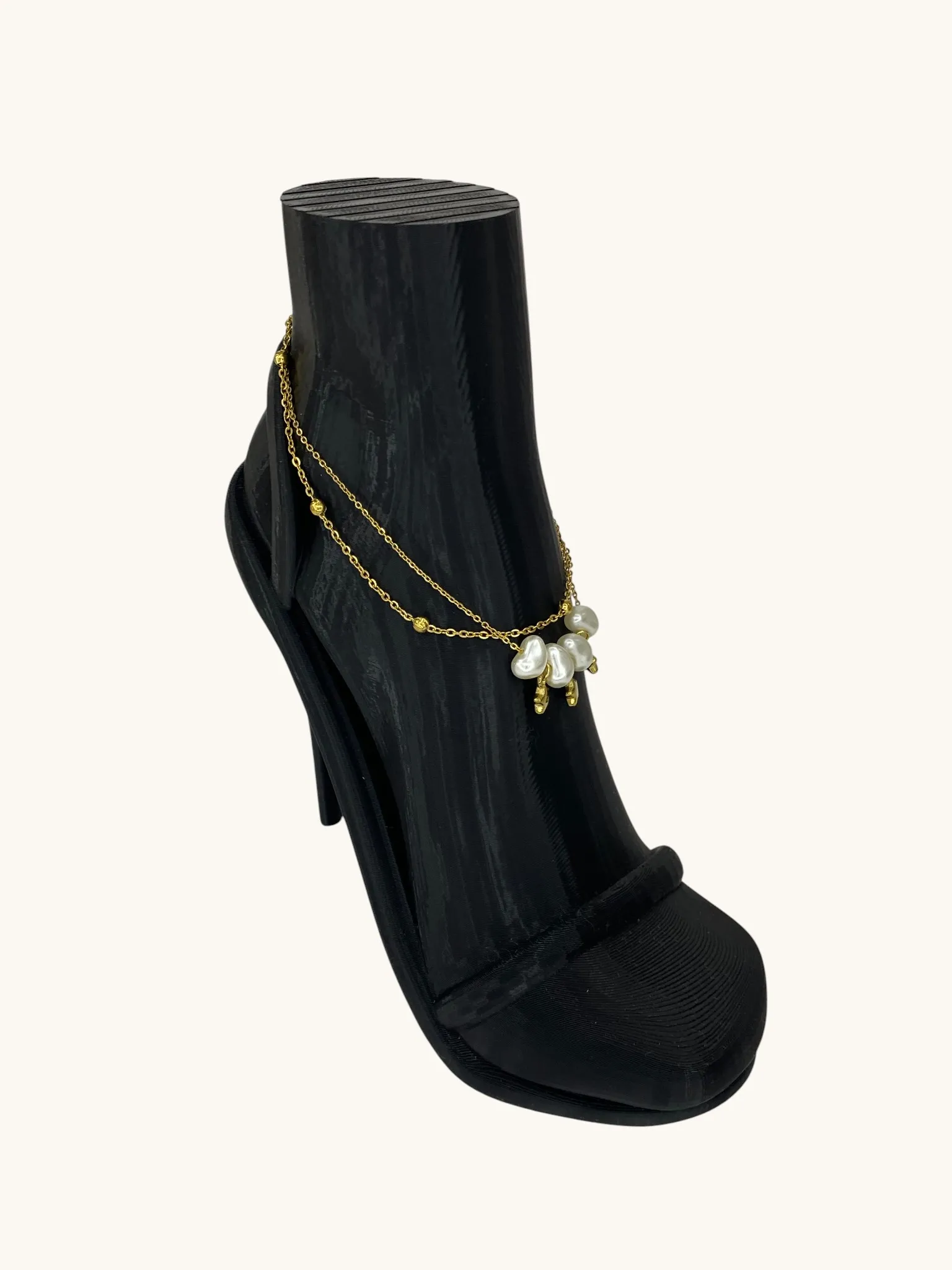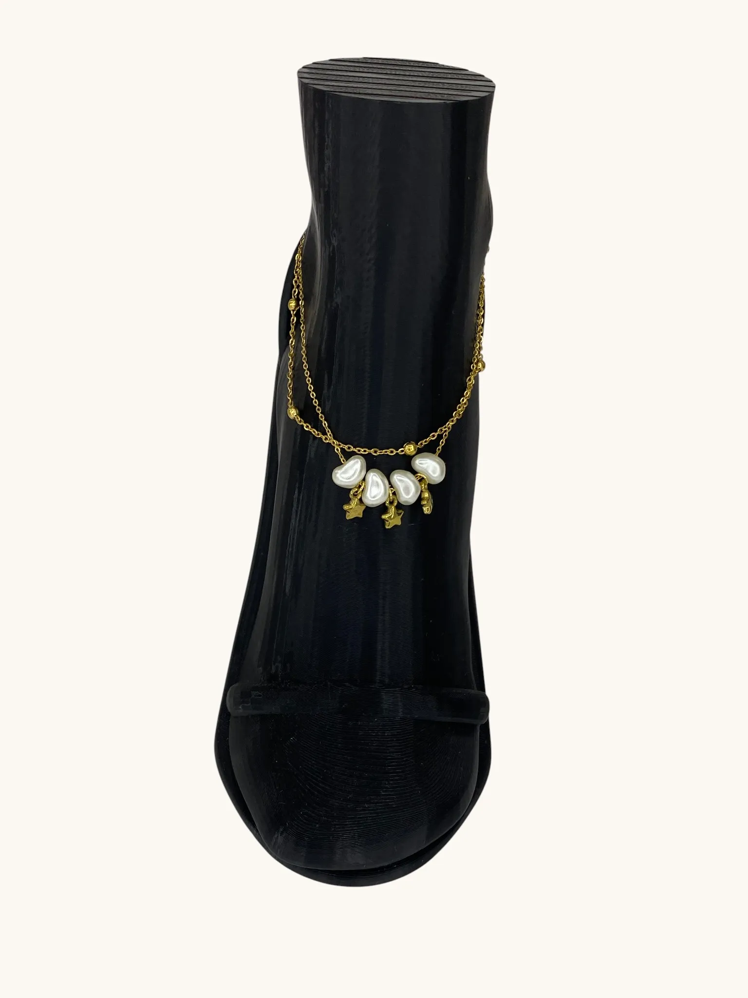 Gold Bijüteri Çift Zincirli Kalp İnci Yıldızlı Halhal adet