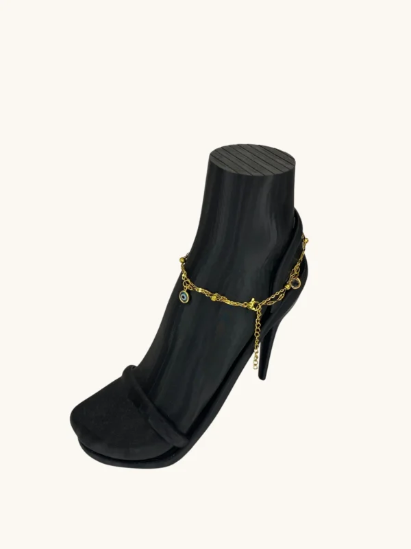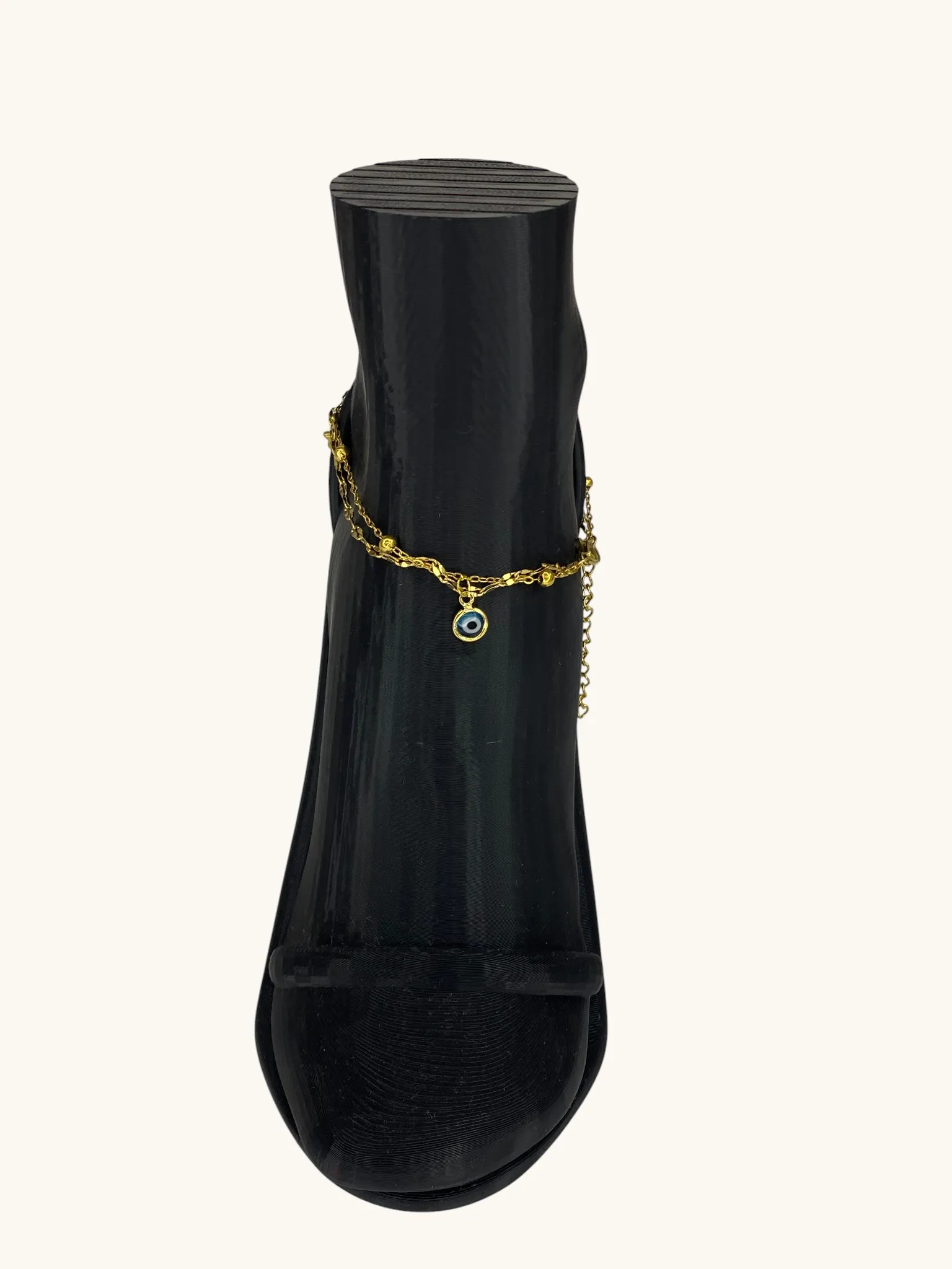 Gold Bijüteri Çift Zincirli Mavi Göz Boncuk Halhal adet