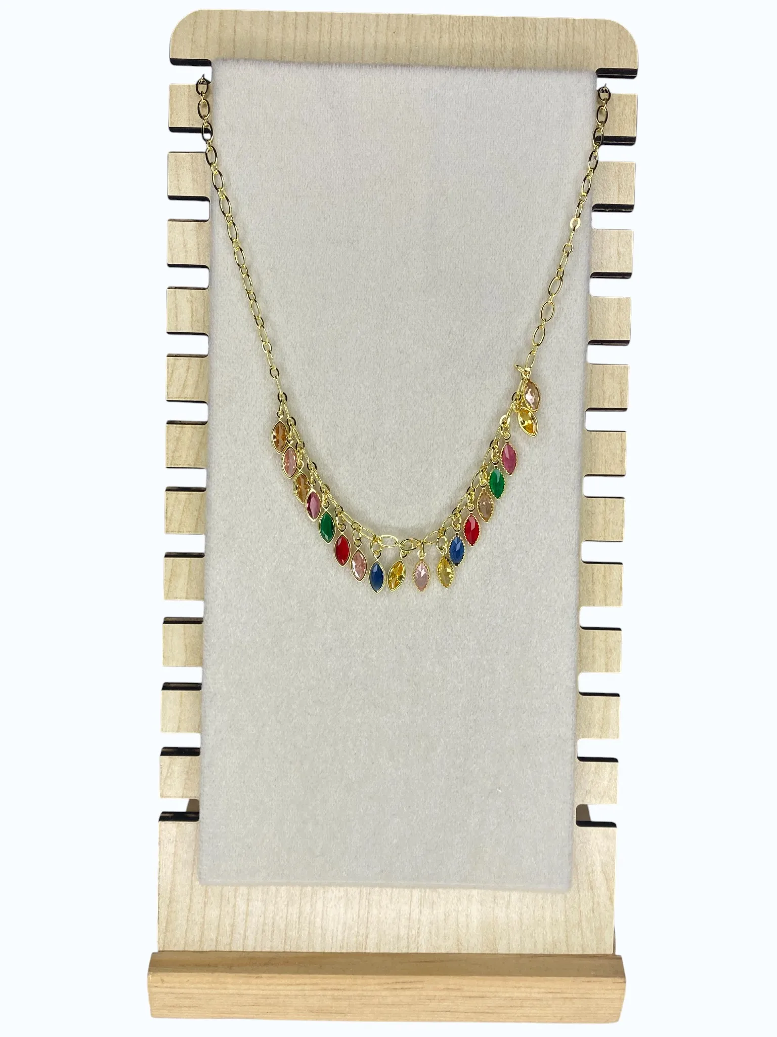 Gold 14K Oval Renkli Taşlı Kolye adet
