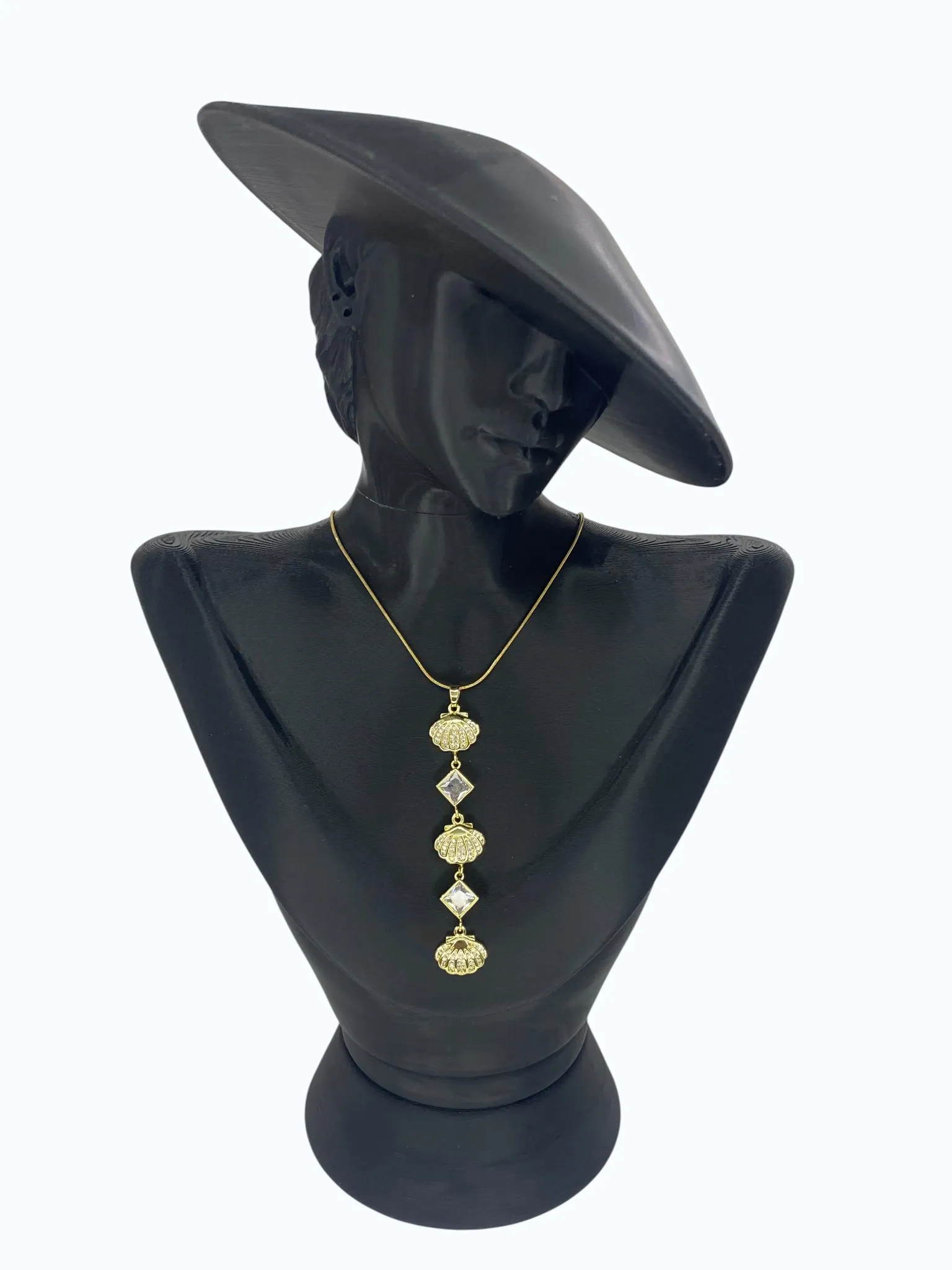 Gold Çelik Deniz Kabuklu Taşlı Y Kolye