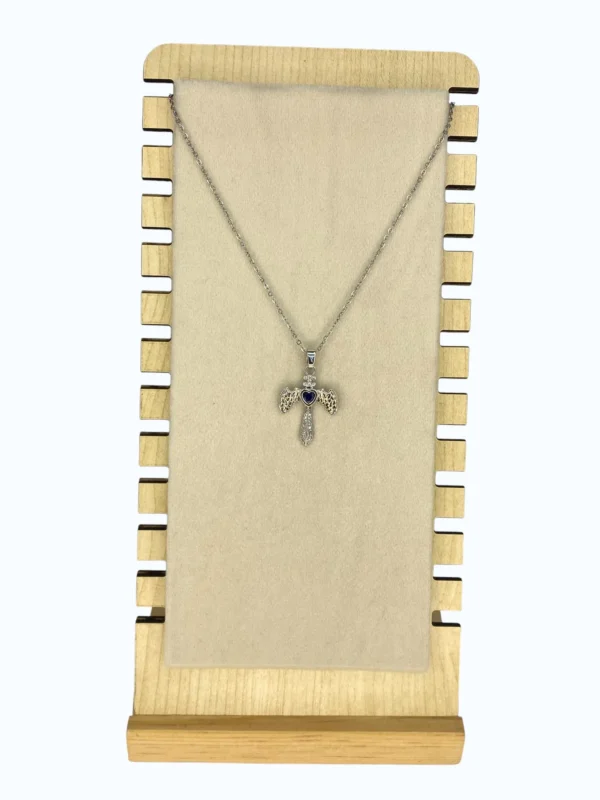 Silver Çelik Kanatlı Kılıç Larcivert Taşlı Kolye adet