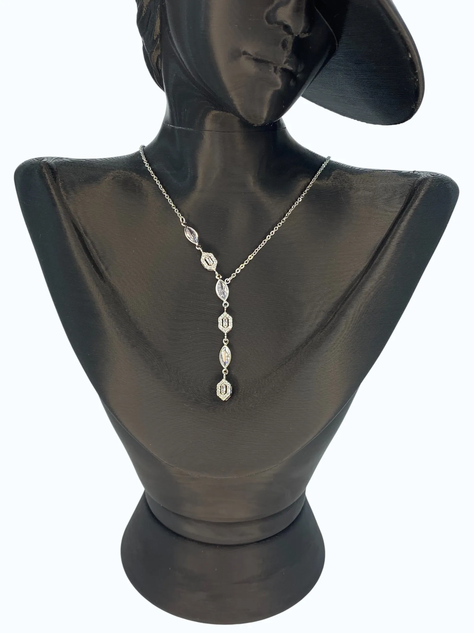Silver Çelik Taşlı Baklava Model Y Kolye