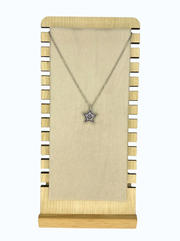 Silver Çelik Yıldız Ucutoplu Beyaz&Lacivert Taşlı Kolye