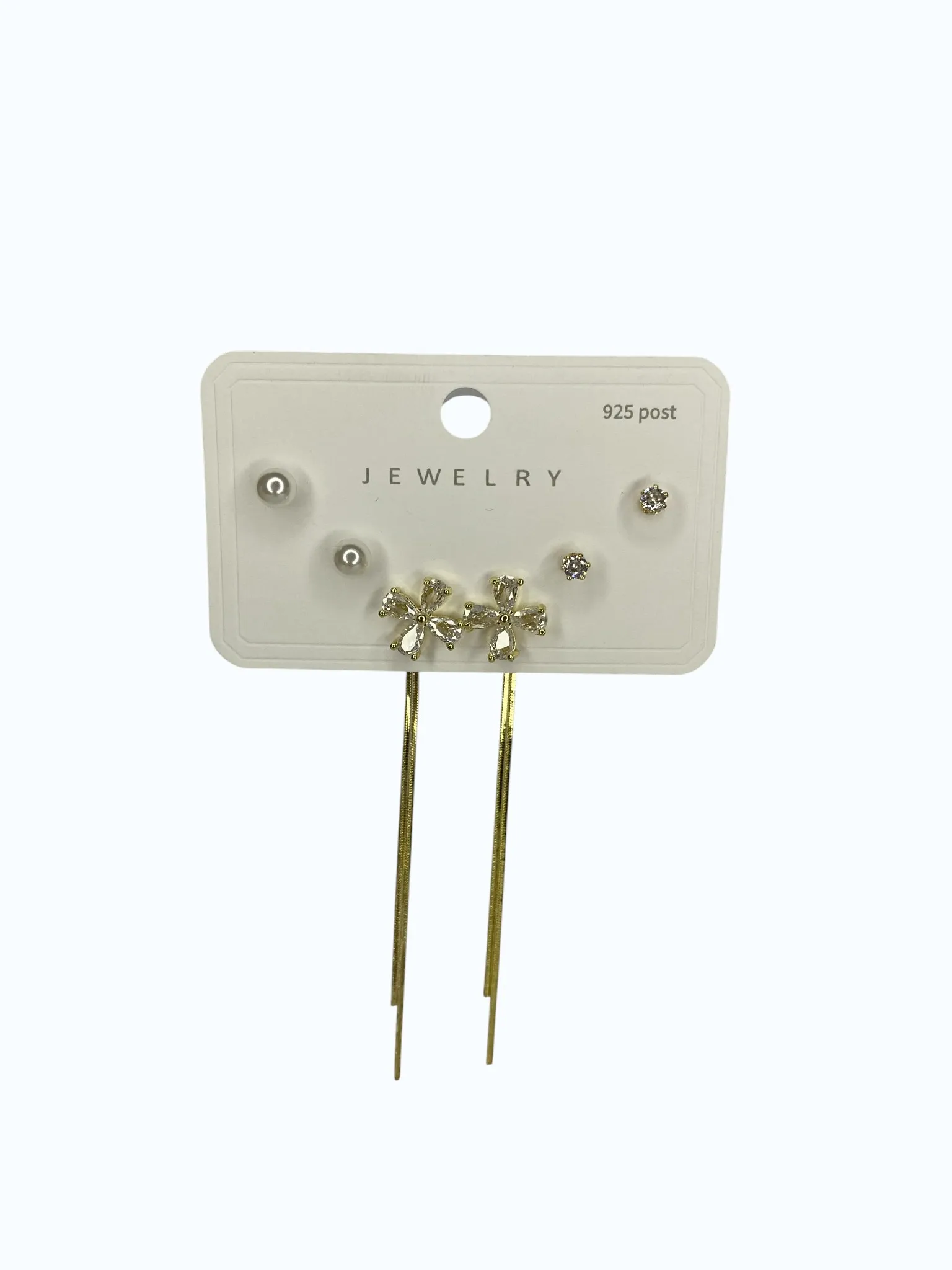 Gold Çelik Çiçekli Zincirli Çoklu Küpe adet