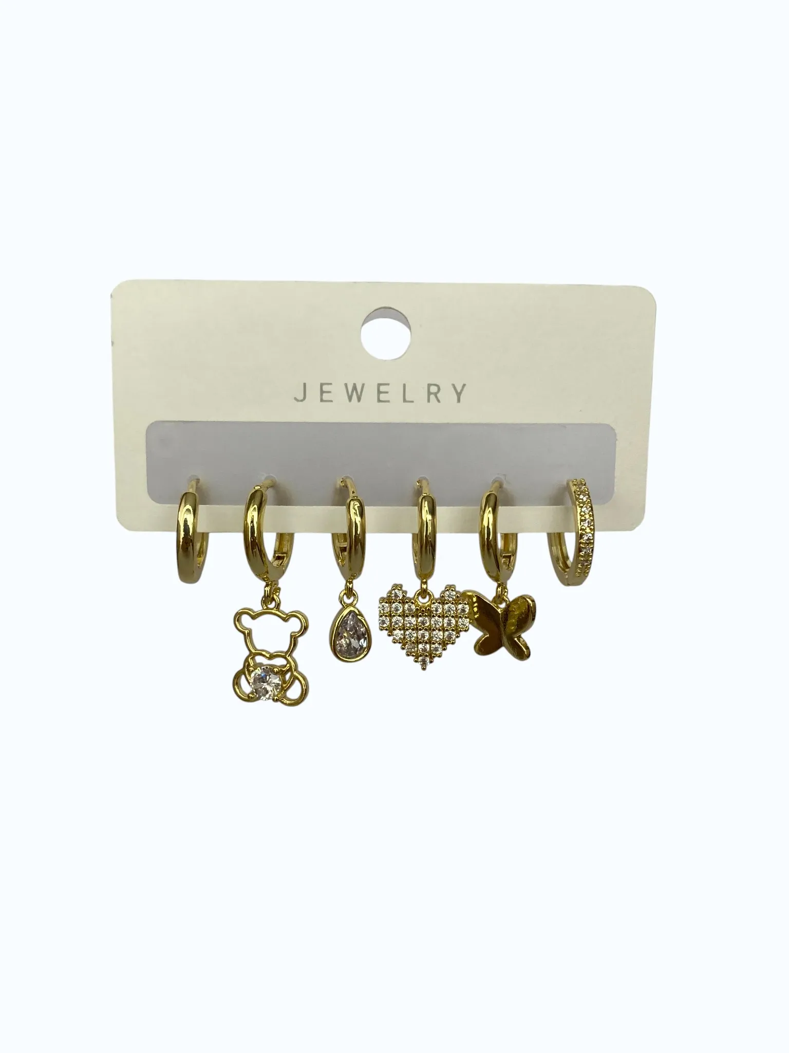 Gold Çelik Kalp Kelebekli Çoklu Küpe adet