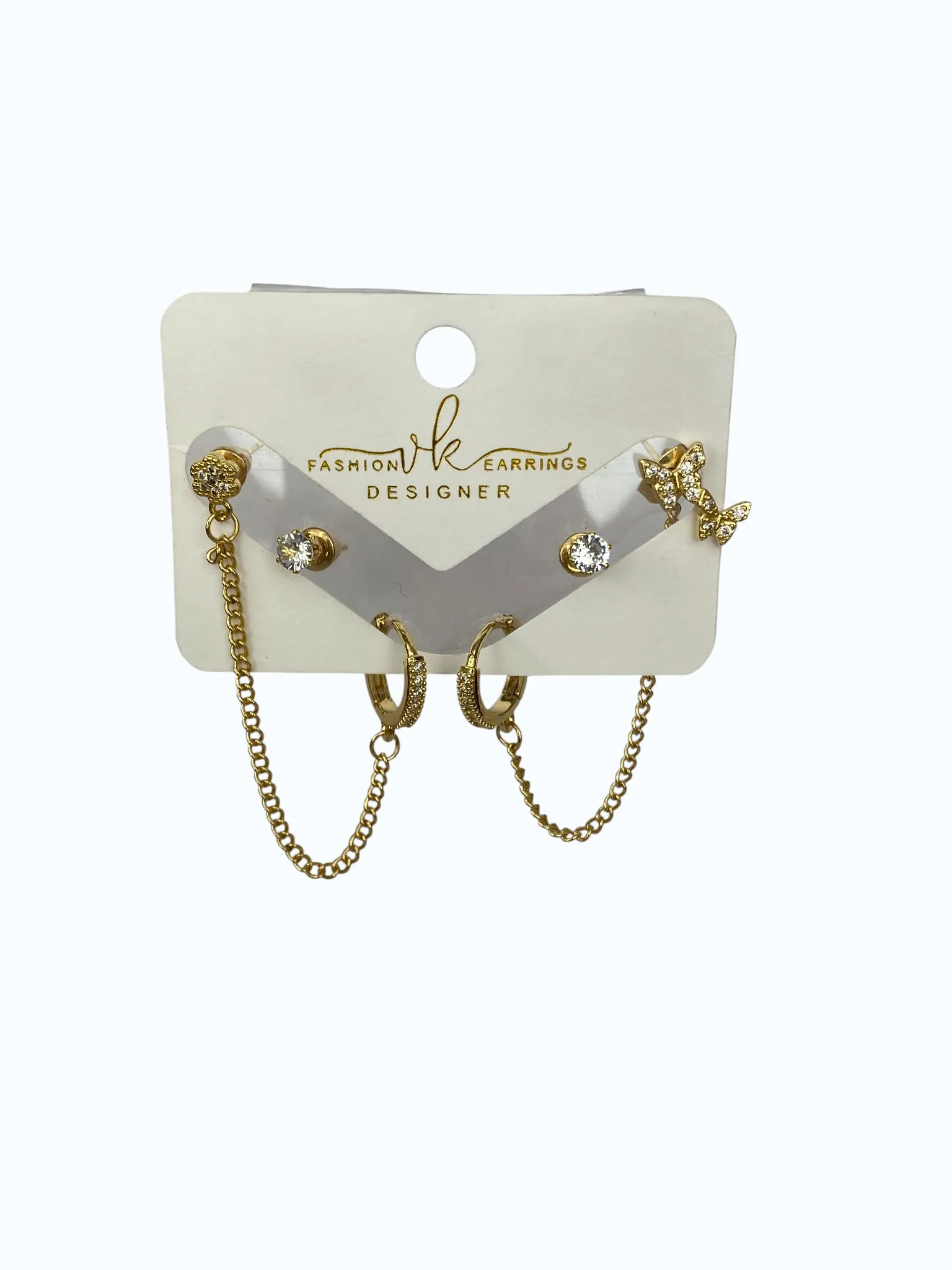 Gold Çelik Kelebek Zincirli Çoklu Küpe adet