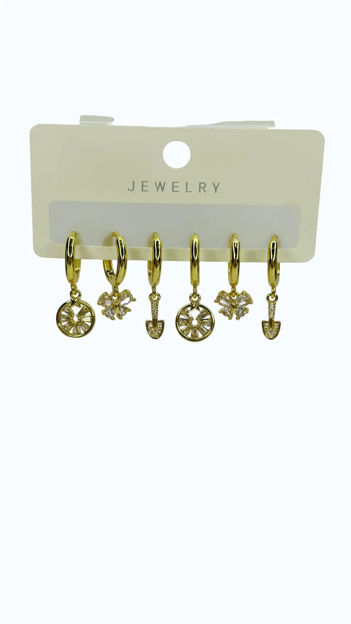 Gold Çelik Yeşil Taşlı Damla Çoklu Küpe adet