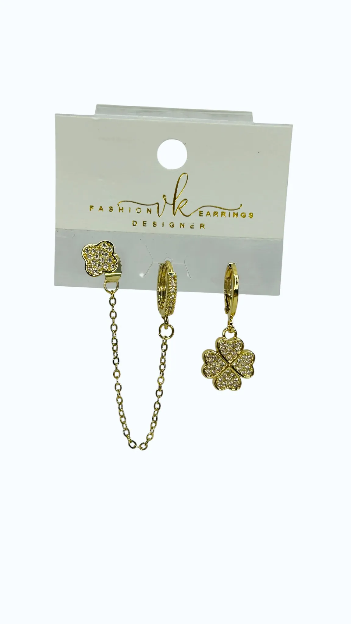 Gold Çelik Taşlı Yonca Zincirli Çoklu Küpe adet