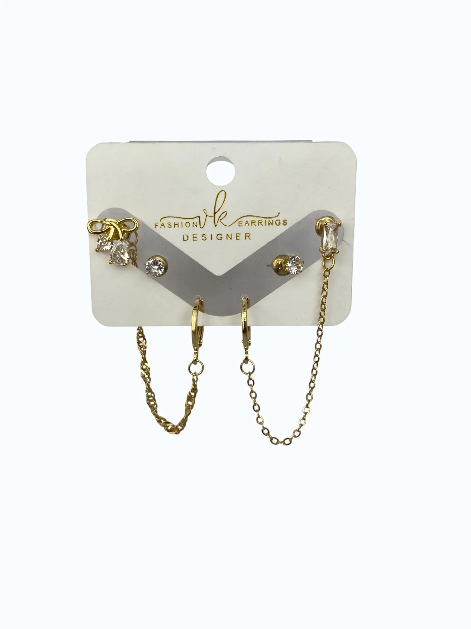 Gold Çelik Zincirli Fiyonk Taşlı Çoklu Küpe