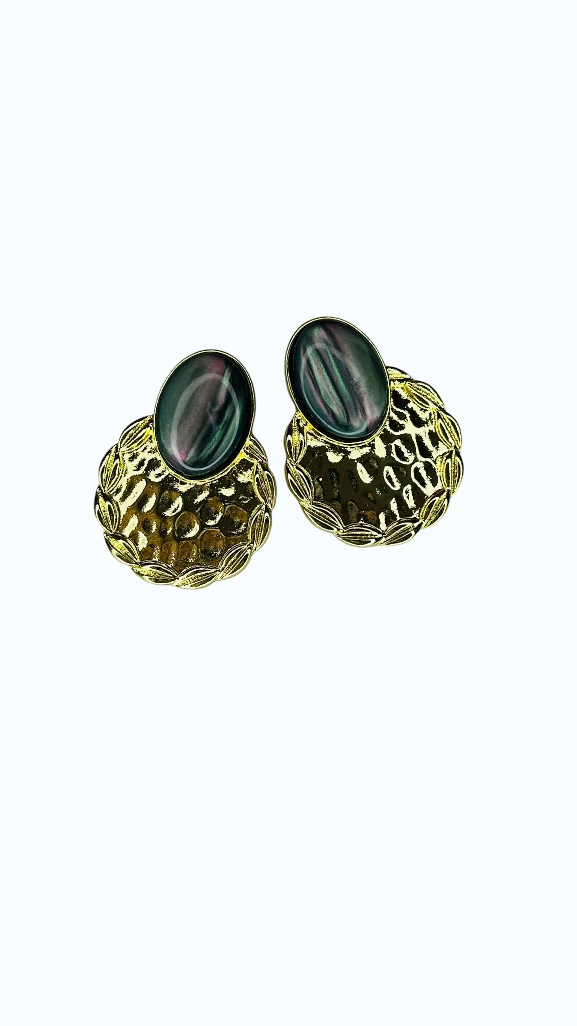 Gold Kaplama Antrasit Taşlı Küpe