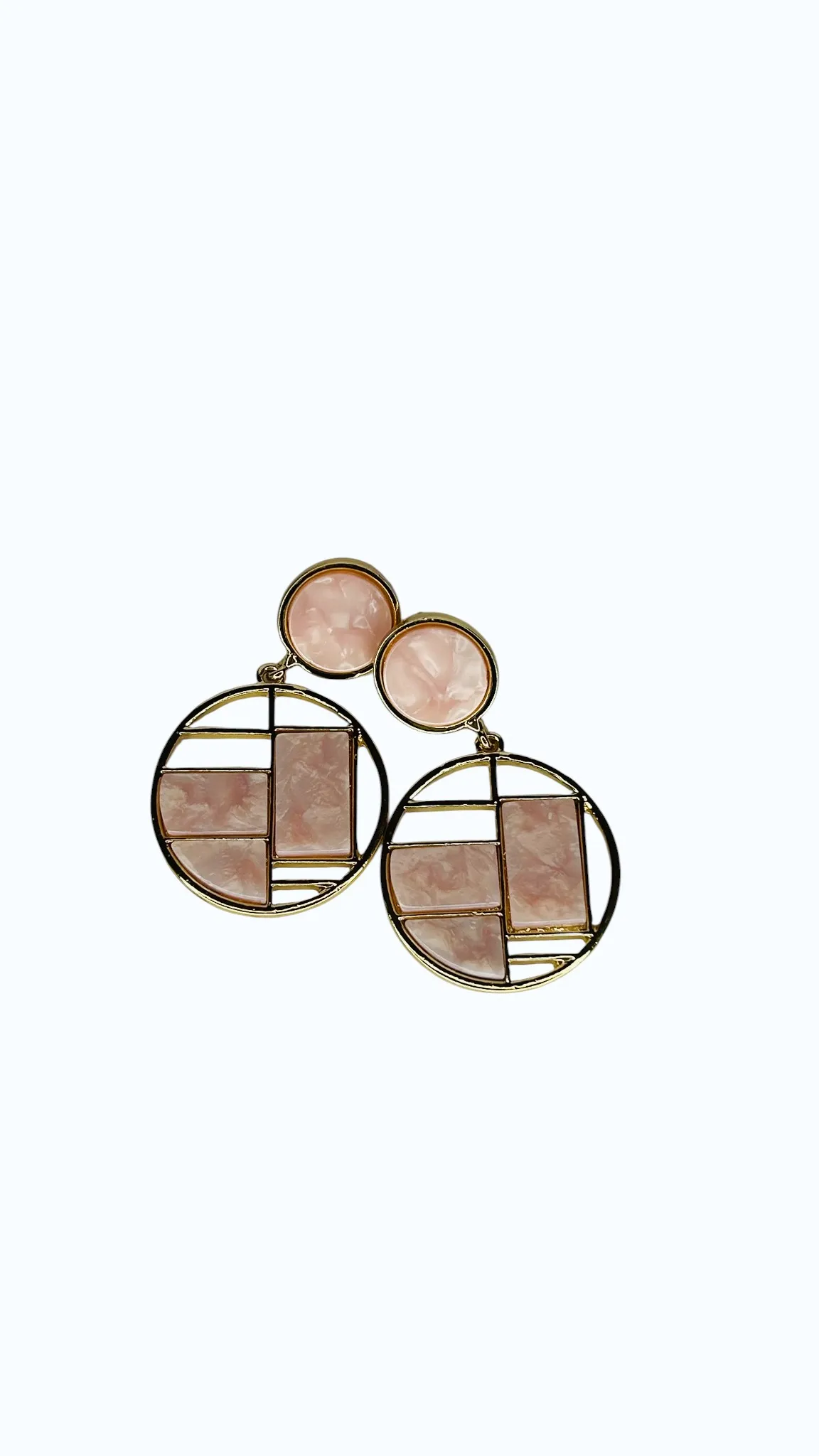 Gold Kaplama Pembe Sedef Renkli Daire Sallanan Küpe
