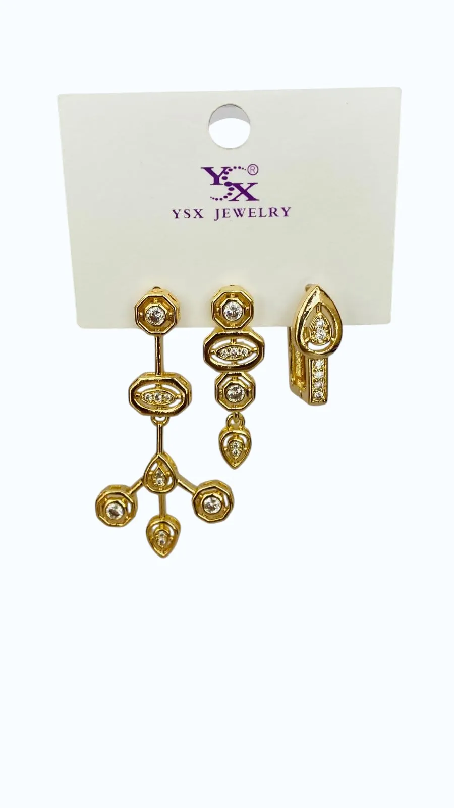 Gold Ysx Taşlı Farklı Çelik Küpe Çoklu