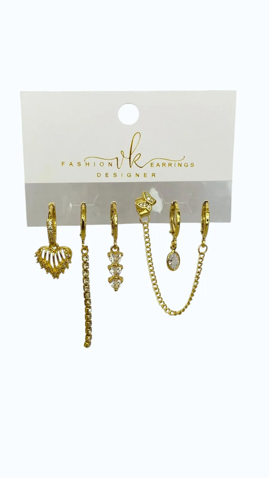 Gold Çelik Daire Taşlı Zincirli Çoklu Küpe adet