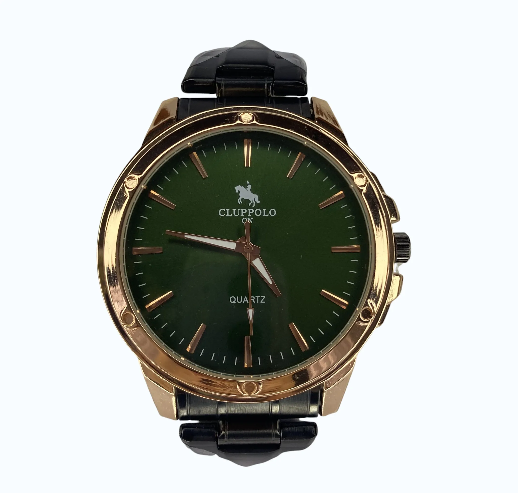 Metal Siyah Kordonlu Gold Kasalı İçi Yeşil Desenli Ayarlamalı Erkek Saat