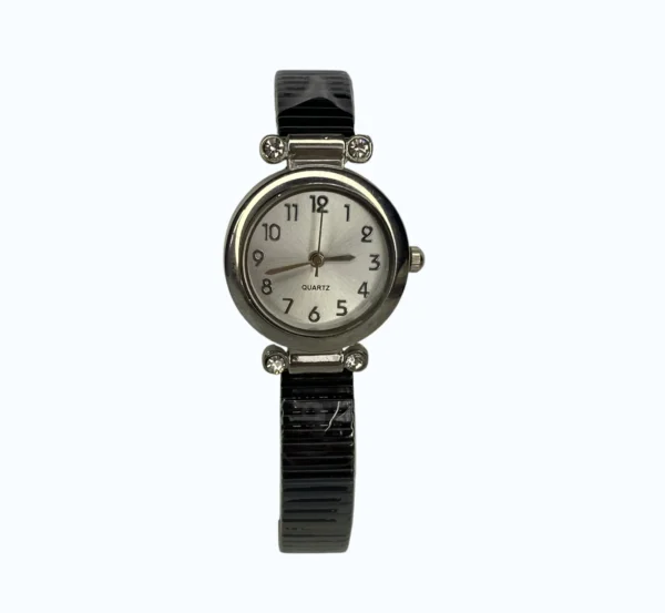 Metal Siyah Kordonlu Taşlı Ayarlamalı Kadın Saat